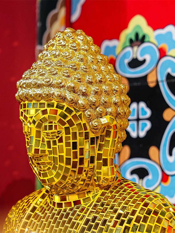 As a professional custom Mosaic Sculpture Manufacturer, we provide flexible customization for size, color tone, and surface detailing to match hotel lobbies, spa centers, meditation halls, and luxury interior projects. The reflective mirror surface enhances lighting effects, creating a calm yet iconic visual focus.