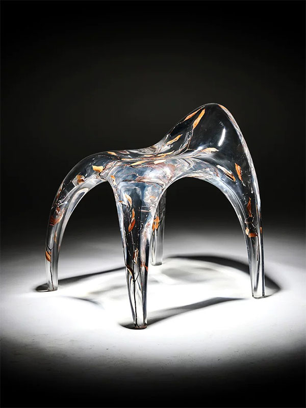 Under light, the chair creates dynamic refractions and shadows, making it not only a functional seat but also a striking functional art installation.